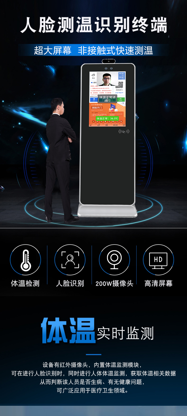 人臉識別測溫一體機可以配合門禁或閘機,結(jié)合智能測溫系統(tǒng),在不同場景實現(xiàn)不同功能的應(yīng)用。